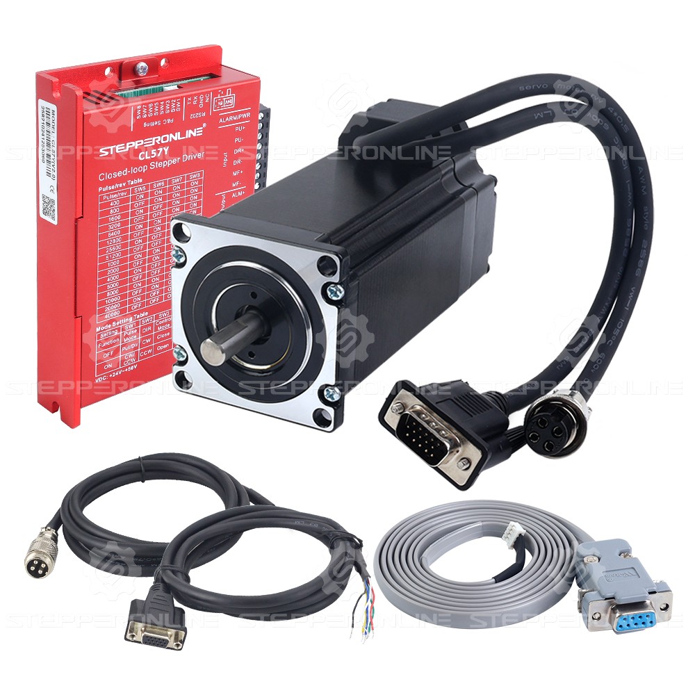 Bu CNC kiti şunları içerir: 1 x 17HS24-2004D-E1K: Nema 17 Kapalı Döngü Adım Motoru 80 Ncm (113,29 oz.in) Kodlayıcı 1000PPR (4000CPR) ile 1 x CL42T-V41: Nema 11, 14, 17 Adım Motoru için Kapalı Döngü Adım Motoru Sürücüsü V4.1 0-3.0A 24-48VDC 1 x CABLE-PC-1: RS232 Hata Ayıklama Kablosu Motor Özellikler..